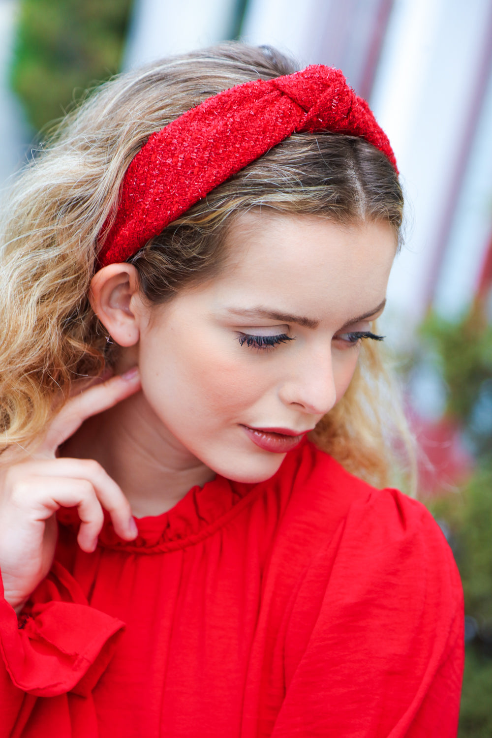 Just in time for the holidays, sweep back tresses into a poised style with this classtic christmas red top knot headband. Lend a hint of vintage attitude to your holiday ensemble.